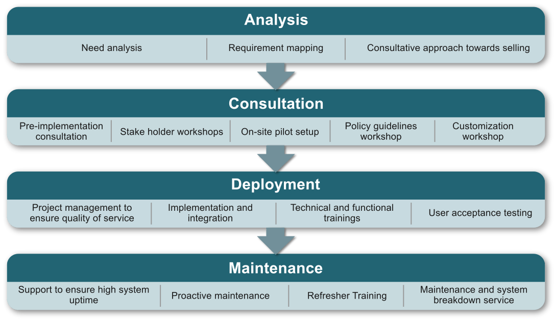 Nexuslib practices a 4-Step methodology towards achieving customer’s requirements and strategic goals. The consultative approach towards every customer requirement, mapping their requirements to offerings from Commercial or Open Source technologies helps us offer solutions which provides easy adaptability, greater flexibility and lower cost of ownership.